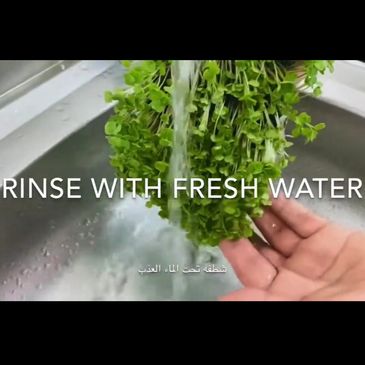 Remove the sheet of microgreens from the container. Hold it under a running tap and rinse until clean. Shake the sheet of microgreens to remove excess water. Cut the Hollandia microgreen stems as needed.